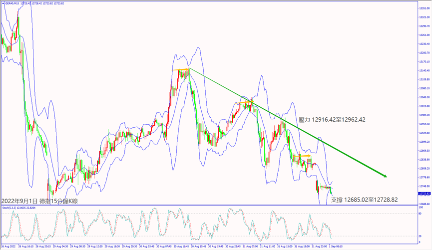 昨天(31日)受到歐盟缺乏天然氣恐衝擊經濟,以及美國小非農數據不佳,造成歐美股指皆下跌逾1%。預期今天(1日)歐元區公佈製造業數據大都利好,德指若突破小時布林帶中軌12,803,建議可短多操作。預期今天美國公佈經濟數據好壞參半,納指沖不過小時布林帶上軌線12,306,建議可短空操作。