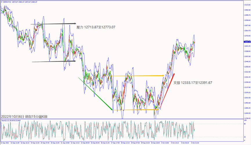 昨天(5日)美國公佈小非農數據利好,帶動道瓊斯和納指逆勢上漲近2%。預期今天(6日)歐洲央行貨幣政策會議紀要重申加息抑制通脹,德指一旦跌破小時布林帶中軌12,605,建議可短空操作。預期今天美國公佈全球供應鏈壓力指數上升恐利淡股指,道瓊斯若跌破小時布林帶下軌線30,184,建議可短空操作。