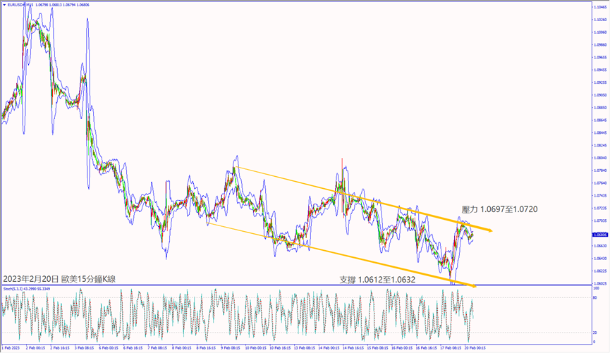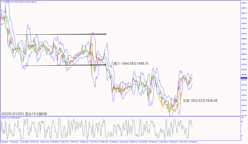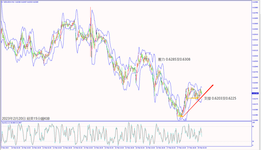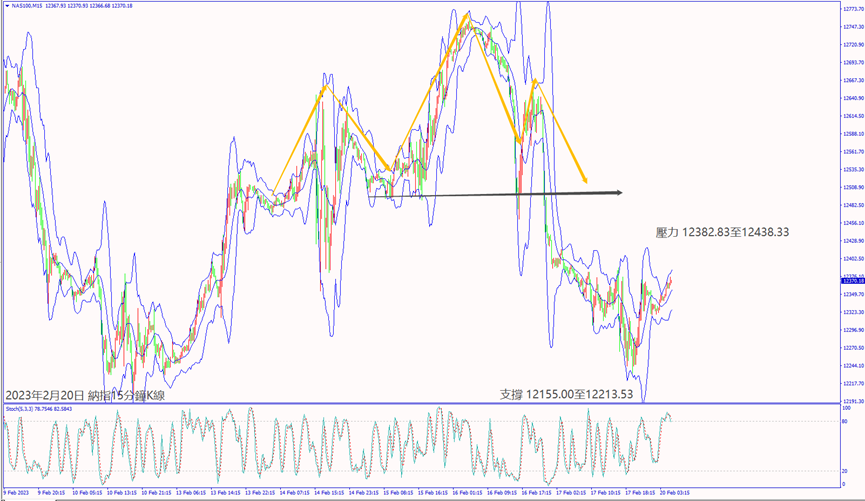 上週五(17日)美聯儲巴爾金表示加息趨緩利淡加息,帶動道瓊斯和德指逆勢漲逾1%。昨天(19日)美英支持瑞典和芬蘭加入北約恐造成歐洲戰爭擴大,德指若再度摜破10日均線15,465,建議可短空操作。今天(20日)美國總統日假期晚間交投轉清淡,納指若跌破小時布林帶下軌線12,276,建議可短空操作。