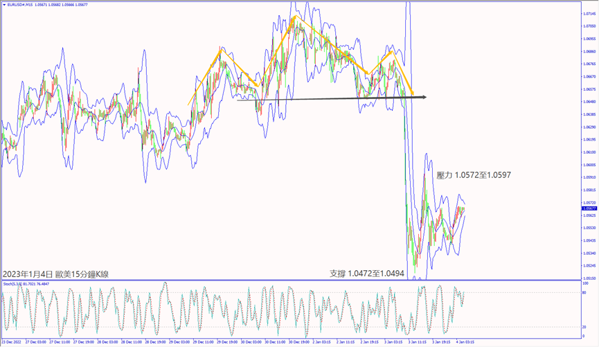 今天(4日)美國眾議院議長選舉經過三輪投票仍然難產,亞洲市場拋售美元造成指數下跌約23個點。預期今天歐元區公佈經濟數據大都不佳,可能造成歐美和鎊美下跌。預期本週四(5日)清晨美聯儲貨幣紀要維持加息,可能帶動美元指數上漲。