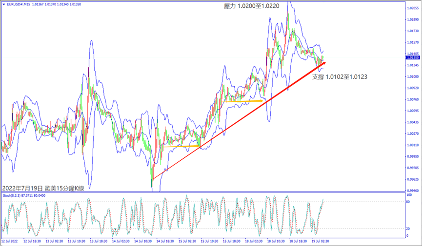 今天(19日)清晨美國眾議院通過支持瑞典和芬蘭加入美約,早上歐美和鎊美皆下跌約30個點。今天澳洲聯儲會議紀要表示將考慮提高25個或50個基點的可能性,帶動澳美上漲逾25個點。預期今天歐元區公佈CPI數據利好,有望帶動歐美上漲。
