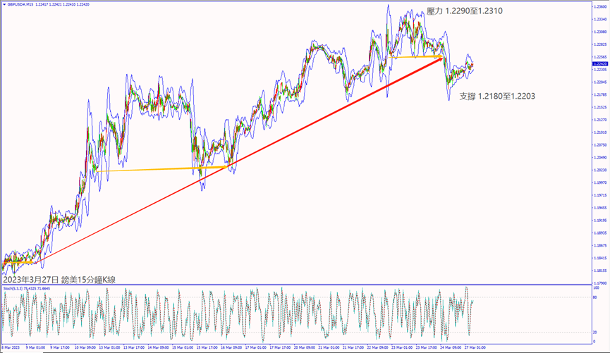 上週五(24日)美國公佈經濟數據利好美元上漲,今天(27日)亞洲市場回補美元帶動指數上漲約18個點。預期今天德國和英國公佈經濟數據不佳,可能造成歐美和鎊美下跌。預期本週二(28日)英國央行行長重申加息抑制通脹,可能帶動歐美和鎊美上漲。