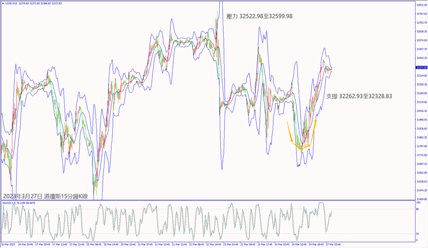上週五(24日)美國公佈經濟數據大都好於市場預期,帶動道瓊斯和納指逆勢漲約2%。預期今天(27日)德國公佈商業景氣指數不佳,德指若跌破10日均線15,070,建議可短空操作。預期今天美國公佈經濟數據利好,道瓊斯若突破240日均線32,429,建議可短多操作。
