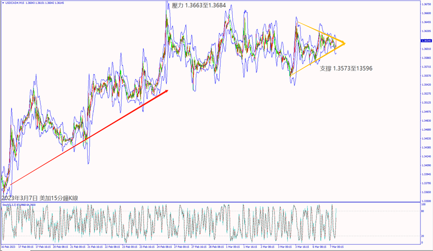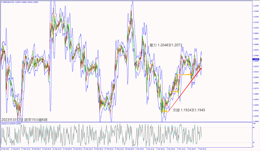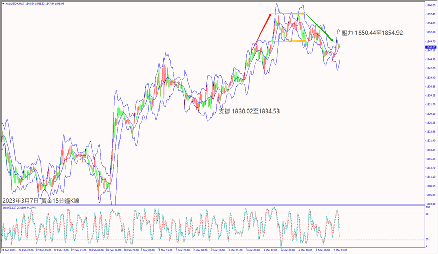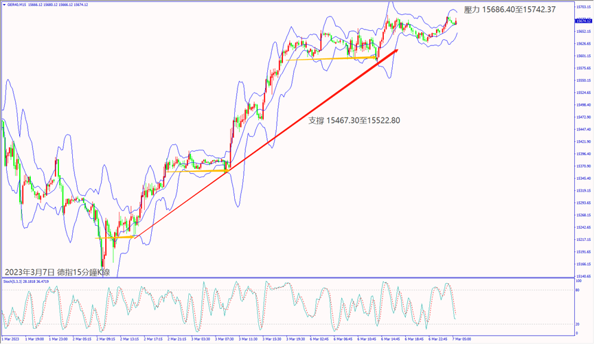 昨天(6日)美國公佈經濟數據利好,一度帶動道瓊斯和納指上漲近1%。受到冬季風暴影響恐衝擊經濟,造成美股尾盤轉跌吞噬當日漲勢。預期今天(7日)歐洲央行官員重申3月持續加息,德指一旦跌破小時布林帶下軌線15,597,建議可短空操作。預期今天美聯儲主席鮑威爾重申持續加息抑制通脹,納指沖不過小時布林帶上軌線12,382,建議可短空操作。