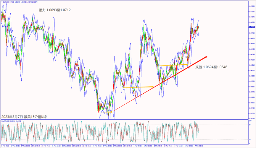 昨天(6日)歐元區公佈經濟數據大都不佳,利淡歐美和鎊美皆跌逾45個點,推升美元指數衝高至104.50附近盤整。歐洲央行管委霍爾茨曼稱預計還將有4次50個基點的加息,帶動歐美和鎊美皆漲超45個點,也讓美元指數轉跌約50個點,拖累美日和美加皆跌逾30個點。晚間美國公佈經濟數據利好,推升美元指數漲至104.30附近整理,也讓歐美和鎊美出現回調。