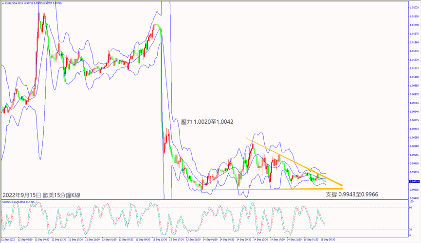 昨天(14日)歐盟委員會主席馮德萊恩表示正在討論天然氣價格上限,以及提出中小企業的救濟計劃,利好歐美和鎊美皆漲逾65個點,也讓美元指數回落至109.40附近整理。日本財務大臣暗示政府恐干預日元下跌,造成美日反轉大跌約240個點。晚間美國公佈PPI數據利好,以及美國眾議院官員對臨時撥款法案通過表示樂觀,利好美元指數止跌上漲約40個點,帶動美日和美加皆漲超55個點,也讓歐美下跌吞噬當日漲勢。