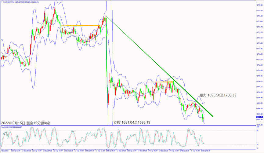 昨天(14日)美元指數震盪,美債收益率止跌反彈,也讓黃金價格反轉下跌約15美元,尾盤守在1695美元附近整理。預期今天(15日)美國公佈經濟數據大都利好,黃金價格沖不過1700關口,建議可短空操作。