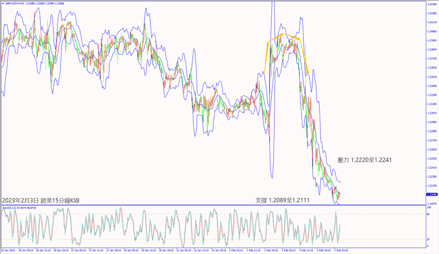昨天(2日)清晨美聯儲加息1碼後表示仍維持加息,亞洲市場回補美元帶動指數上漲,也讓歐美和鎊美下跌。晚間英國央行利率決議宣布加息50個基點利好鎊美急漲約70個點,但是會議內容預計經濟衰退將在5個季度出現低於1%的GDP,利淡鎊美反轉跌超百點。隨後歐洲央行利率決議宣布加息50個基點,但行長拉加德預計經濟增長將保持疲軟,利淡歐美和鎊美擴大下跌逾145個點,拖累澳美和紐美跌約90個點,推升美元指數擴大上漲超百點,帶動美日和美加上漲近80個點。