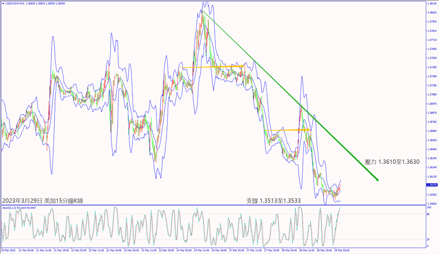昨天(28日)歐佩克+表示下週會議上沒有改變石油產量的跡象利好油價和加元,美加沖不過小時布林帶上軌線1.3616,建議可短空操作。預期今天(29日)歐元區公佈經濟數據利好,歐美若突破小時布林帶上軌線1.0851,建議可短多操作。預期今天美聯儲巴爾對矽谷銀行問題表示樂觀利好美元,鎊美一旦跌破小時布林帶下軌線1.2323,建議可短空操作。