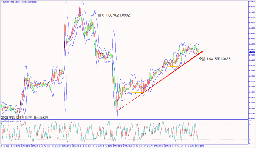 昨天(28日)英國央行行長貝利對瑞士信貸影響公司持有問題示警,利淡鎊美急跌約50個點。歐洲央行監事會主席表示瑞士信貸敞口是相關的,但是可控的,以及歐洲央行官員表示可能有提高利率的空間,利好歐美和鎊美逆勢漲逾40個點,造成美元指數下跌約35個點,拖累美日和美加皆跌約90個點。晚間美國公佈經濟數據利好,以及美聯儲理事巴爾對矽谷銀行問題表示加強資本和流動性規則很重要,也讓美元指數出現30個點震盪,尾盤守在102.00關口上方盤整。