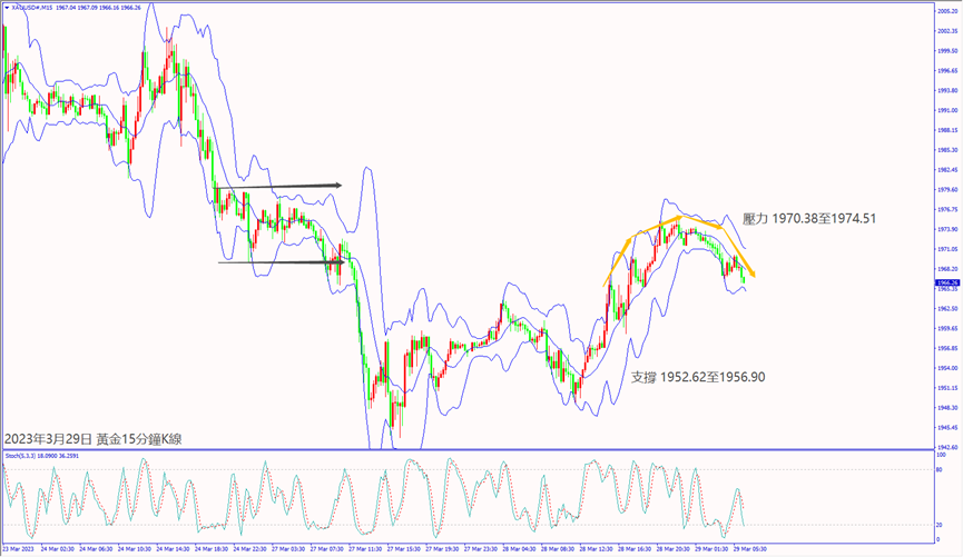 週二(28日)亞洲市場拋售黃金造成價格下跌約15美元。英國央行行長貝利對瑞士信貸影響公司持有問題示警,以及美聯儲理事巴爾對矽谷銀行問題表示加強資本和流動性規則很重要,避險資金回補黃金帶動價格逆勢上漲約25美元,尾盤守在1970.00關口上方整理。