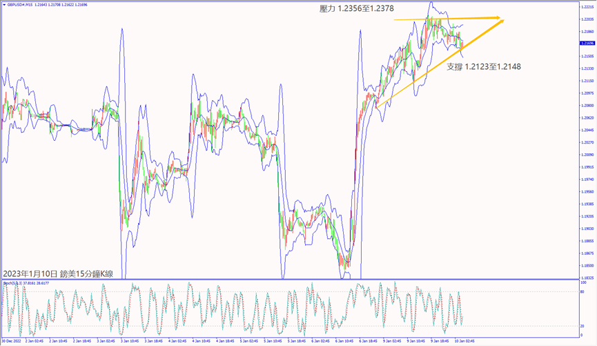 昨天(9日)多位美聯儲官員重申加息抑制通脹,利淡道瓊斯和納指皆跌逾1%。預期今天(10日)歐洲央行官員重申連續加息抑制通脹,德指一旦摜破小時布林帶下軌線14,665,建議可短空操作。預期今天美聯儲主席鮑威爾重申加息趨緩,道瓊斯若突破小時布林帶中軌33,587,建議可短多操作。