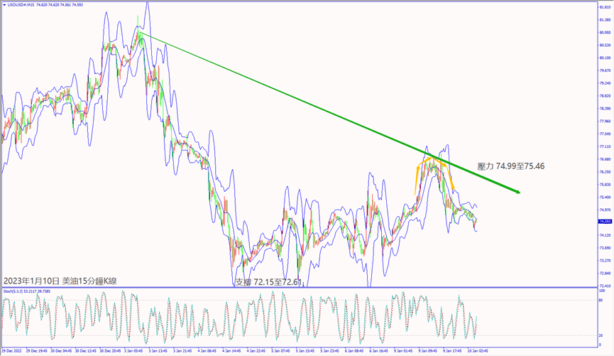 昨天(9日)受到歐美股指轉跌影響,造成美油價格下跌近3%,尾盤守在75美元附近整理。預期週三(11日)清晨EIA月度短期能源報告調降今年石油需求,美油價格若跌破5日均線74.16美元,建議可短空操作。
