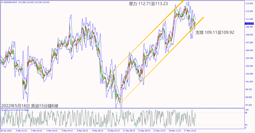 昨天(17日)英國和歐元區經濟數據利好,德指大漲帶動美國股指皆漲逾1%。晚間美國公佈經濟數據好壞參半,道瓊斯和納指出現200點震盪。受到歐美股指上漲影響,美油價格一度拉高至113.00關口。俄羅斯外長拉夫羅夫改口稱芬蘭和瑞典加入北約其實沒有太大區別,因為他們長期參加北約的軍事演習,造成美油價格逆勢下跌。晚間俄羅斯總統普京表示石油的收入正在上升,暗指歐洲還沒有禁止進口俄國石油,造成美油擴大下跌超3%。