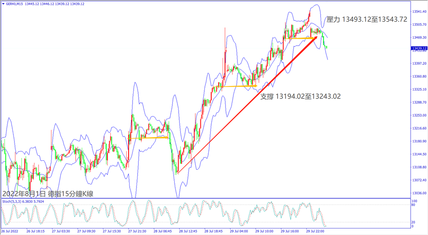 上週五(29日)歐美公佈經濟數據利好,帶動歐美股指皆漲逾1%。預期今天(1日)歐元區公佈製造業數據大都不佳,德指若沖不過60日均線13,502,建議可短空操作。預期今天美國公佈經濟數據大都利好,道瓊斯若突破小時布林帶上軌線32,897,建議可短多操作。