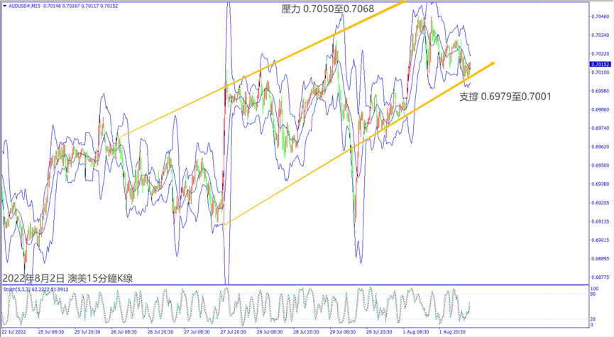 今天(2日)美國伊利諾伊州和加利福尼亞州進入猴痘疫情緊急狀態,早上美元指數下跌近40個點。預期澳大利亞宣布加息,利好澳美拉出漲勢。預期今天英國和瑞士公佈經濟數據皆不佳,可能造成歐美和鎊美下跌。