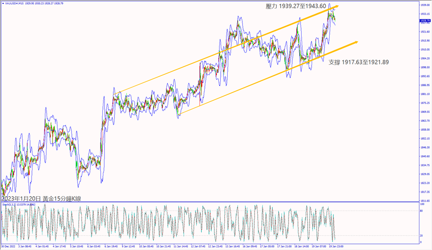 昨天(19日)受到美元指數下跌影響,帶動黃金價格上漲約35美元。預期今天(20日)德國公佈PPI數據下降利淡歐元和利好美元,黃金價格若跌破小時布林帶中軌1928美元,建議可短空操作。