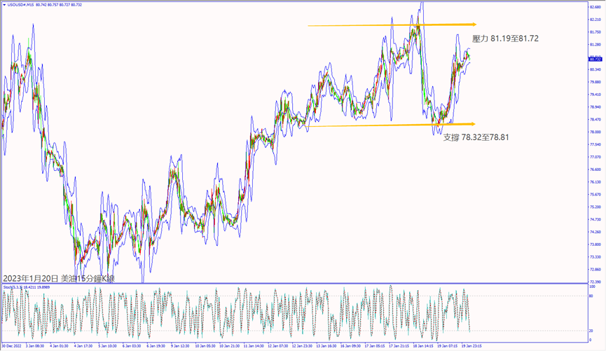 昨天(19日)歐洲央行官員表示計劃多次加息50個基點,利淡德指下跌近2%,拖累道瓊斯和納指下跌約1%。晚間美國公佈經濟數據大都利好,帶動道瓊斯和納指出現反彈。受到歐美股指下跌影響,拖累美油價格回落至79.50美元附近整理。聯合石油數據庫JODI公佈沙特2022年11月原油生產和石油減少,利好美油價格反彈。晚間美國公佈經濟數據利好股指上漲,帶動美油價格擴大上漲超2%。週五(20日)清晨美國EIA原油庫存高於市場預期,一度造成美油急跌。但是北約軍事委員主席表示烏克蘭需要坦克對抗,引發地緣政治再度升溫利好美油價格衝高81.00關口,尾盤守在80.50美元附近整理。