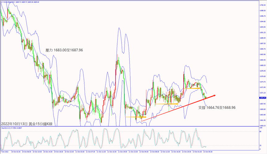 昨天(12日)英國央行官員考慮放鬆管制,以及德國經濟部長稱德國經濟將陷入衰退,造成德指出現1%震盪。美國公佈PPI數據持續攀升,一度造成道瓊斯和納指下跌約200點。週四(13日)清晨美聯儲會議紀要表示校準緊縮政策,道瓊斯和納指止跌反彈。俄羅斯擴大軍火攻打烏克蘭首都,市場避險買盤帶動美油價格一度漲至88.50美元附近整理。歐佩克月度石油報告調降今明兩年原油需求,造成美油價格跳水下跌逾4%。週四(13日)清晨EIA能源報告調高今年石油需求,帶動美油價格漲至86.00關口附近震盪。