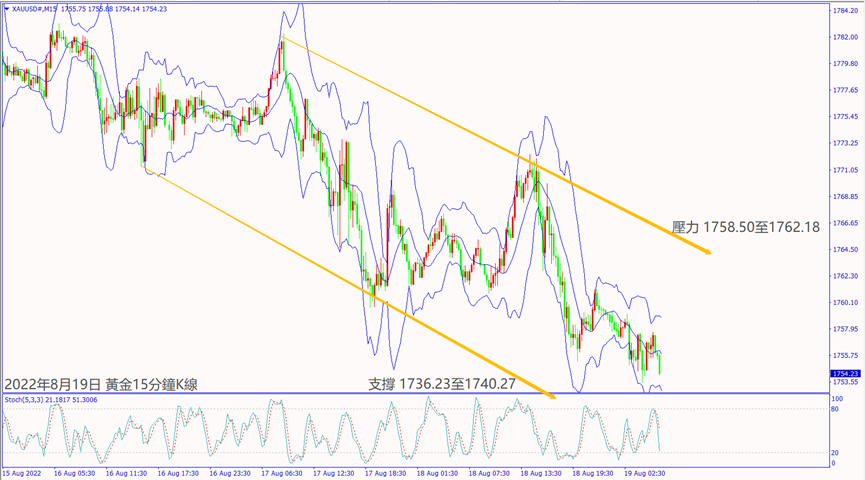 昨天(18日)俄羅斯官員稱烏克蘭軍隊炮打核電廠,地緣政治引發市場回補美油多倉,美國公佈經濟數據,帶動美油價格擴大上漲逾4%。預期今天(19日)歐元區公佈經濟數據大都不佳,美油價格若跌破小時布林帶下軌線89.39美元,建議可短空操作。