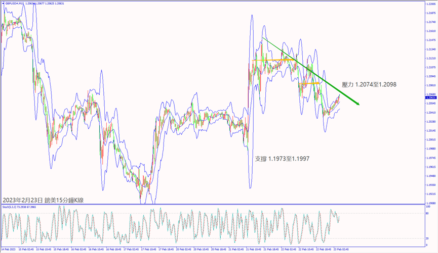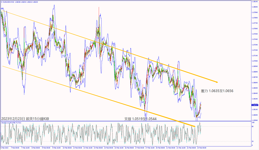 昨天(22日)德國CPI持平和商業景氣指數不佳,利淡歐美和鎊美下跌。英國首相表示將仍在與歐盟進行密集討論脫歐後的貿易法律框架,利好歐美和鎊美反彈。晚間美聯儲布拉德樂觀經濟增長利好加息,以及週四(23日)清晨美聯儲貨幣會議紀要少數官員支持加息50個基點,利好美元指數逆勢上漲約55個點,推升美日和美加皆漲逾45個點,也讓歐美、鎊美、澳美和紐美皆漲轉跌超50個點。