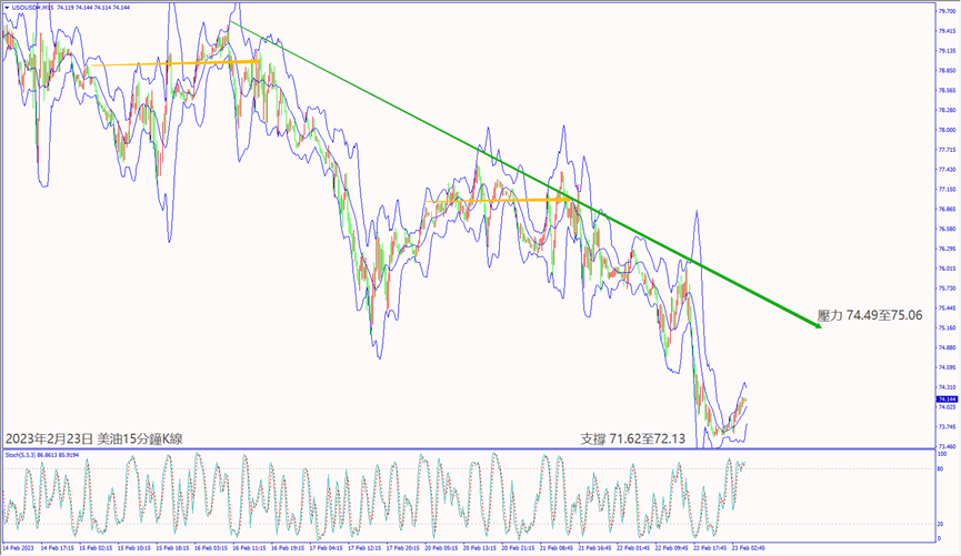昨天(22日)德國公佈CPI持平,以及美聯儲貨幣會議紀要樂觀持續加息,利淡歐美股指皆跌逾1%。德國公佈CPI持平和經濟數據利淡歐股下跌,一度拖累美油價格摜破75.00關口。克里姆林宮公佈關於新削減戰略武器條約,以及烏克蘭議會提交了製裁俄羅斯金融機構的決議草案,引發市場回補美油多倉帶動反彈。晚間美聯儲官員和貨幣會議紀要重申維持加息利淡美股擴大下跌,拖累美油價格反轉跌約3%,尾盤守在73.50美元附近整理。