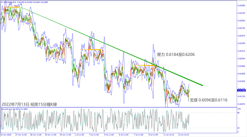 今天(13日)新西蘭宣布利率決議加息50個基點,但對2022年第一季度GDP小幅收縮示警,也讓紐美一度急漲後反轉下跌約30個點。預期今天德國和法國公佈CPI數據持續攀升,可能帶動歐美和鎊美上漲。預期今天美國公佈CPI數據好壞參半,美元指數可能反轉下跌。