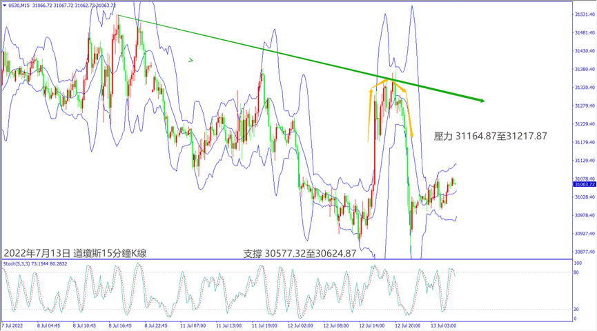 昨天(12日)受到歐洲能源危機影響,早上歐美股指皆下跌約1%。晚間美國財報周傳出利好消息,帶動道瓊斯和納指皆漲超250個點。美國白宮備忘錄預期6月CPI數據持續上升,以及美聯儲巴爾金預期7月加息50或75個基點,造成道瓊斯和納指反轉大跌吞噬晚上的漲勢。受到歐美股指下跌影響,以及歐佩克月報對2023年石油需求表示悲觀,造成美油價格一路下跌再破95關口。週三(13日)清晨美國EIA月度能源報告調降石油需求和價格,造成美油價格擴大下跌約7%。