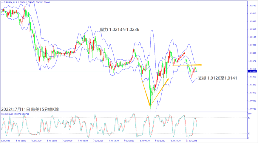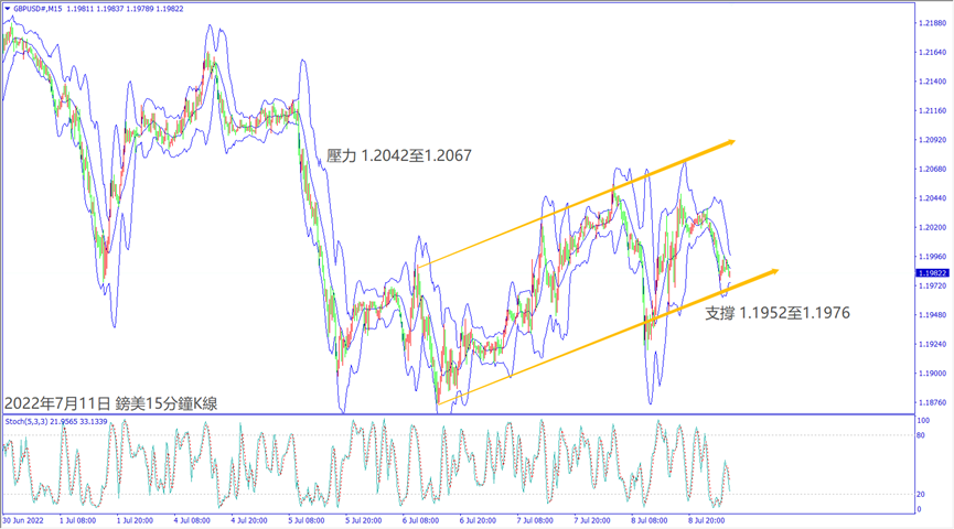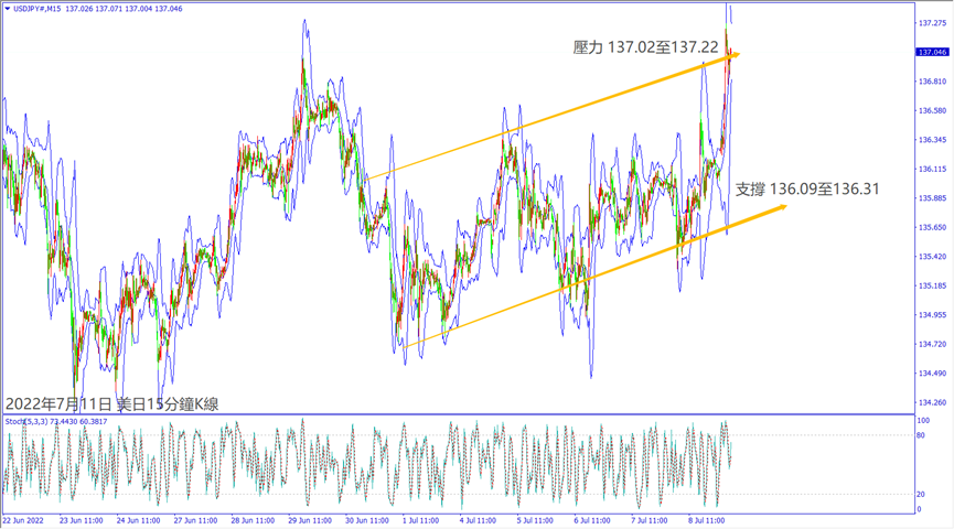 上週五(8日)受到英國首相約翰遜宣布辭任官位影響,亞洲市場拋售英鎊拖累鎊美和歐美皆跌逾120個點,也讓美元指數大漲近百點再度衝上107關口,一度推升美加上漲約70個點。歐洲央行官員重申可以讓7月加息成為合理的做法,帶動歐美和鎊美反彈。晚間美國公佈非農就業數據利好但下修前兩個月數值,造成美元指數急漲後反轉下跌約95個點,拖累美日下跌約70個點,也讓歐美、鎊美、澳美和紐美皆反轉漲超75個點。