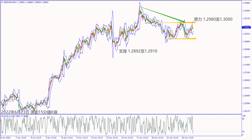 昨天(22日)加拿大央行副行長稱離通脹開始下降還有一段距離,暗示加息有望利好加元,美加沖不過5日均線1.2967,建議可短空操作。預期今天歐洲央行公佈經濟公報可能接近衰退,歐美沖不過小時布林帶上軌線1.0580,建議可短空操作。預期今天美國公佈經濟數據大都不佳恐利淡美元,鎊美若突破5日均線1.2252,建議可短多操作。