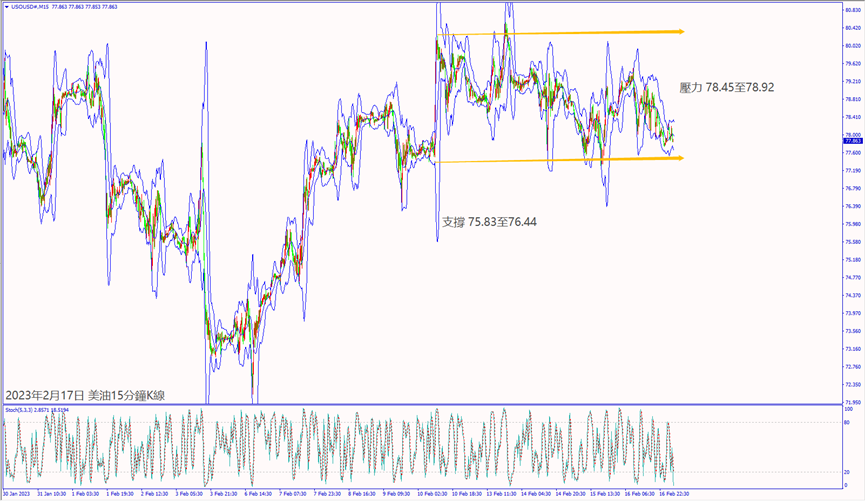 昨天(16日)歐洲央行官員表示利率還沒有達到限制性水平,以及晚間美國公佈PPI好於市場預期,利淡歐美股指皆跌超1%。晚間美聯儲官員預期不准備宣布下次擴大加息,帶動歐美股指出現反彈。受到歐美股指下跌影響,造成美油價格從當日高點反轉跌近2%。晚間歐美股指持續震盪,但是沙特能源部長表示石油需求水平是不可預測的,當看到需求增長時會選擇相信,支撐美油價格在78~79美元間震盪。